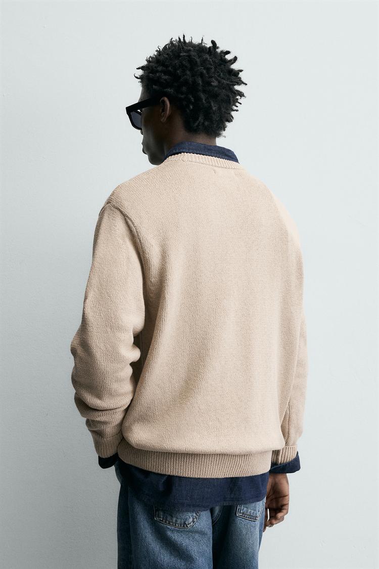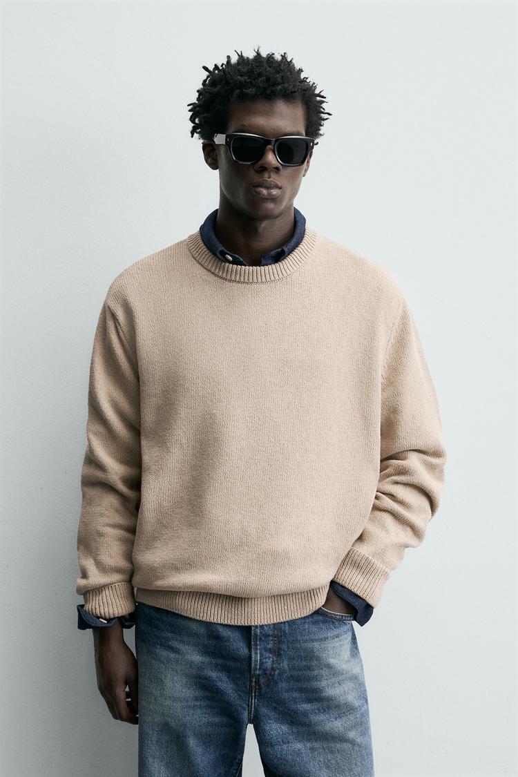 ZARA СВИТЕР ИЗ РЕЛЬЕФНОГО ХЛОПКА, РЫЖЕВАТО-КОРИЧНЕВЫЙ