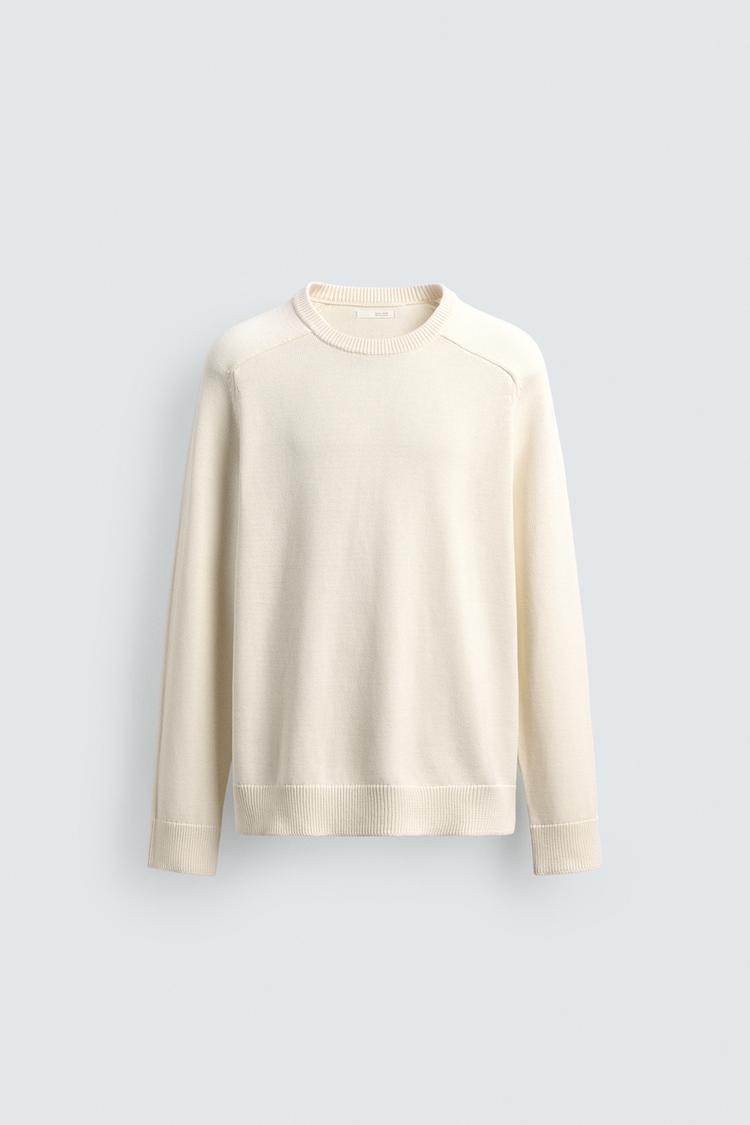 ZARA СВИТЕР ИЗ РЕЛЬЕФНОГО ХЛОПКА, ЖЕЛТОВАТО-БЕЛЫЙ