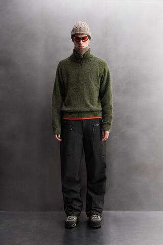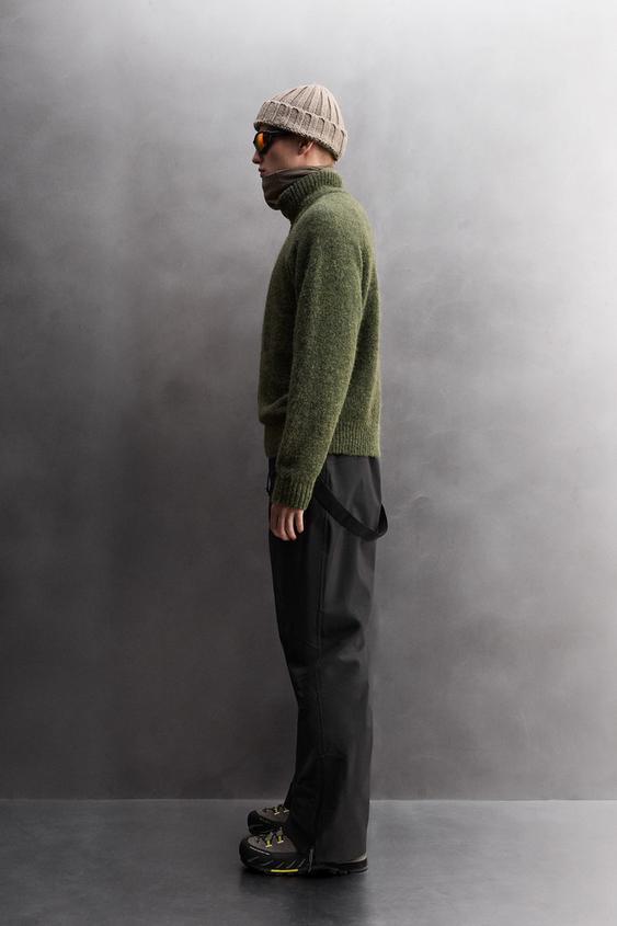 ZARA СВИТЕР ИЗ ШЕРСТИ С ВОРОТНИКОМ НА МОЛНИИ, ЗЕЛЕНЫЙ МЕЛАНЖ
