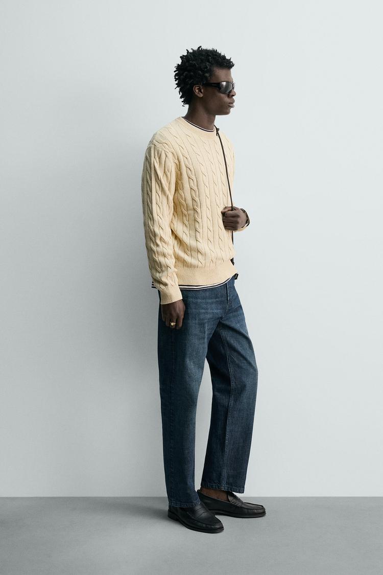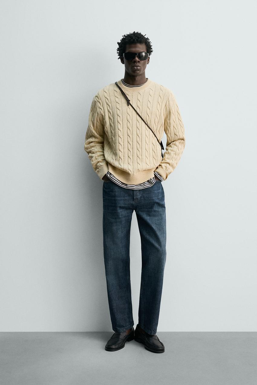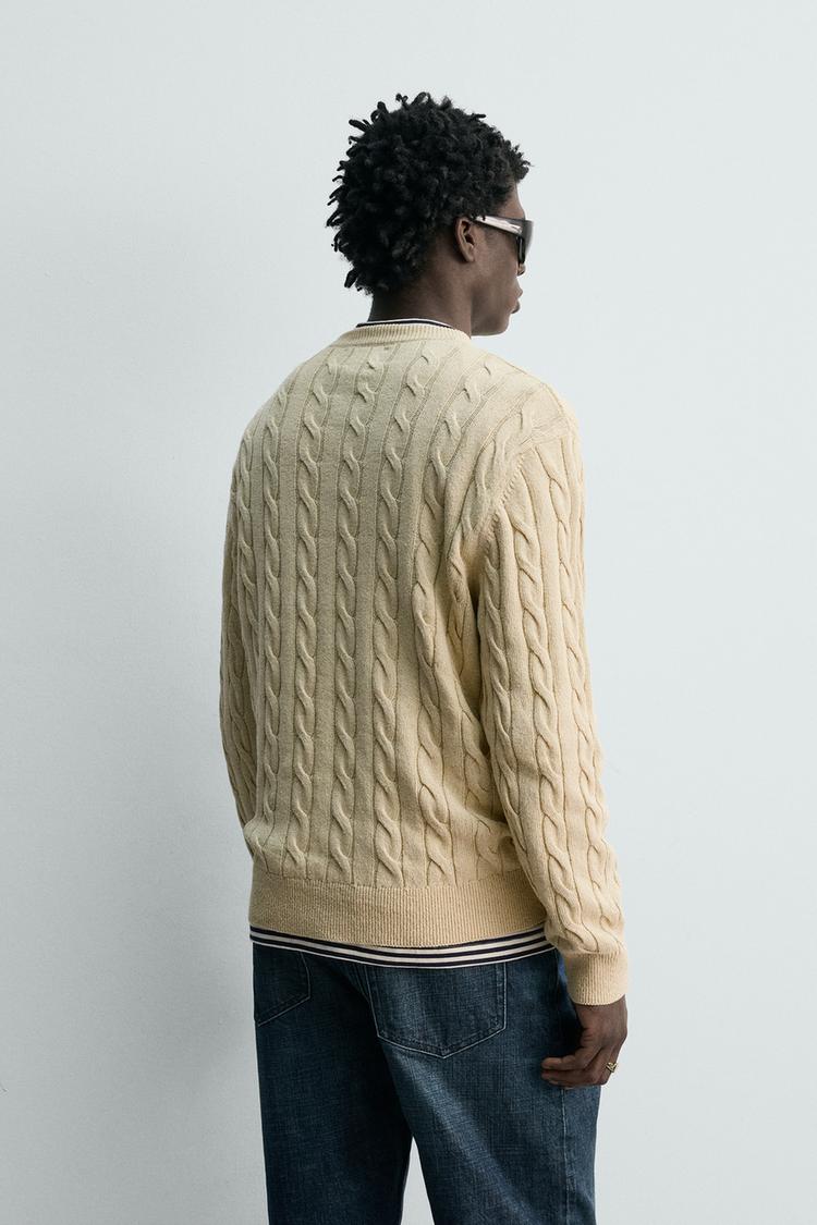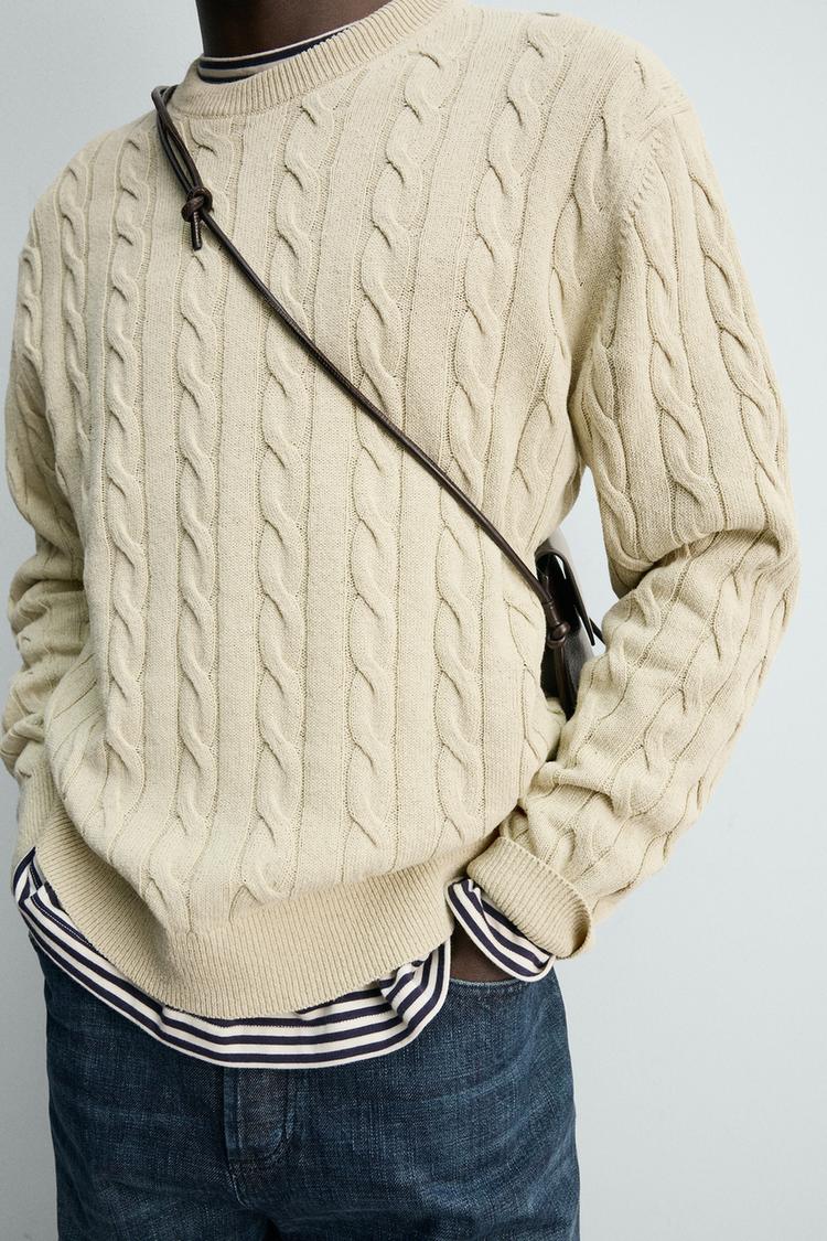 ZARA СВИТЕР ИЗ СМЕСОВОГО ХЛОПКА С УЗОРОМ «КОСЫ», ВАНИЛЬНЫЙ