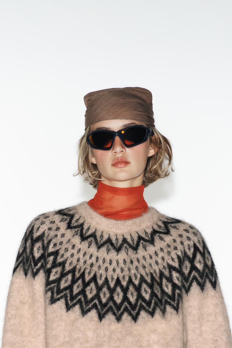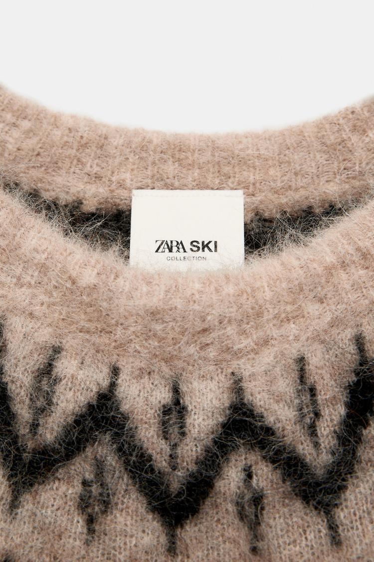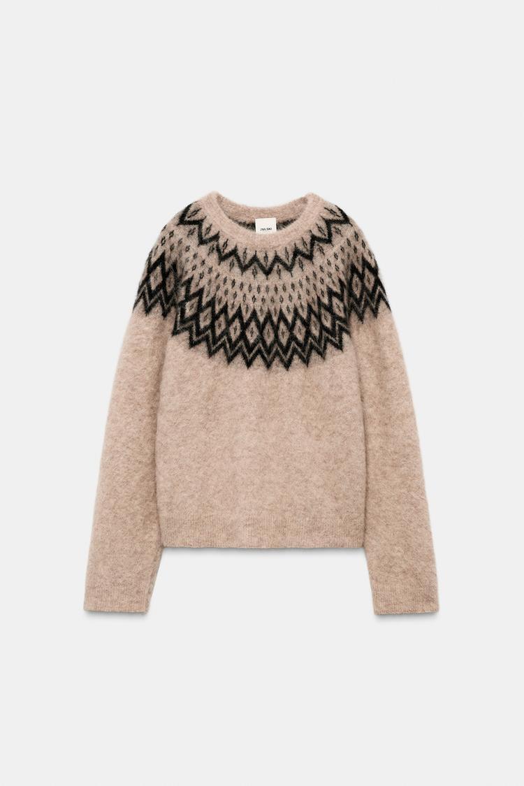 ZARA СВИТЕР ИЗ СМЕСОВОЙ АЛЬПАКИ С КОНТРАСТНЫМ УЗОРОМ, ЭКРЮ