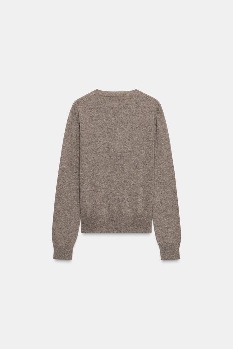 Свитер из смесовой шерсти. V-образный вырез и длинные рукава.