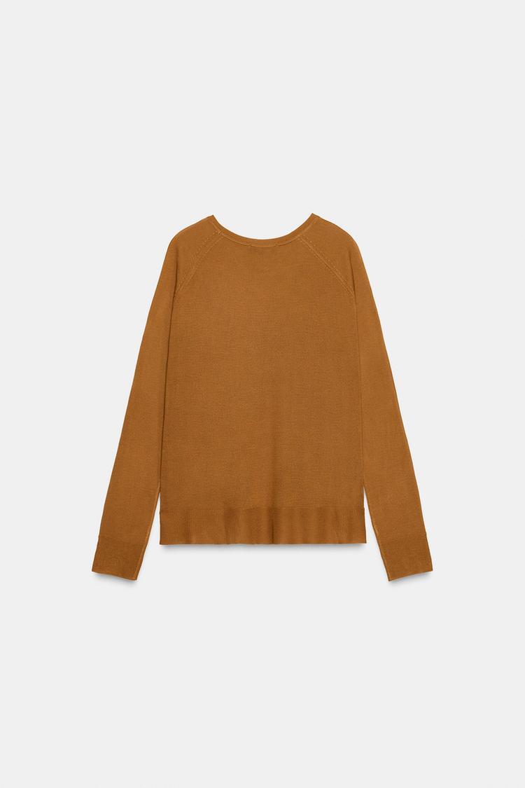 ZARA СВИТЕР ИЗ ТОНКОГО ТРИКОТАЖА, ГОРЧИЧНЫЙ