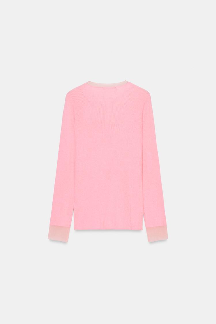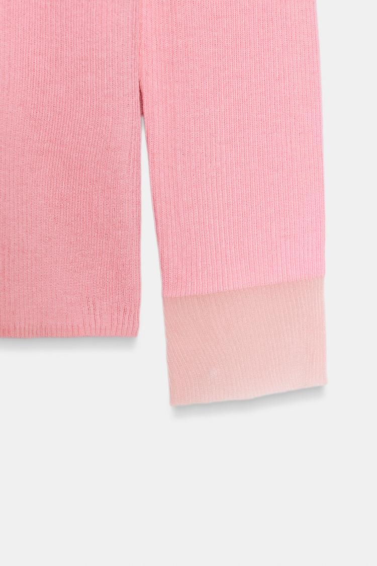 ZARA СВИТЕР ИЗ ТОНКОЙ СМЕСОВОЙ ШЕРСТИ, ЛИНЯЛЫЙ РОЗОВЫЙ