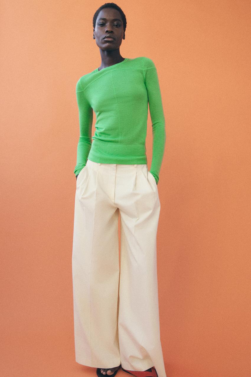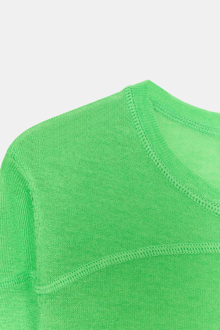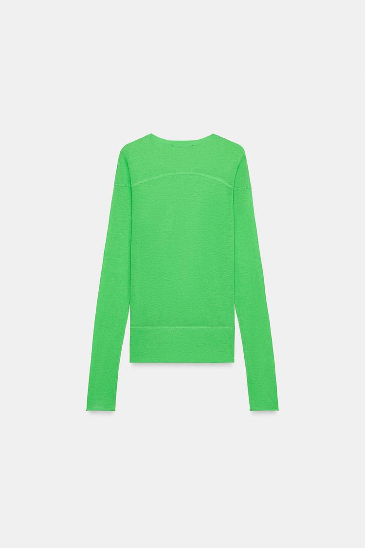ZARA СВИТЕР ИЗ ТОНКОЙ СМЕСОВОЙ ШЕРСТИ, ЗЕЛЕНЫЙ