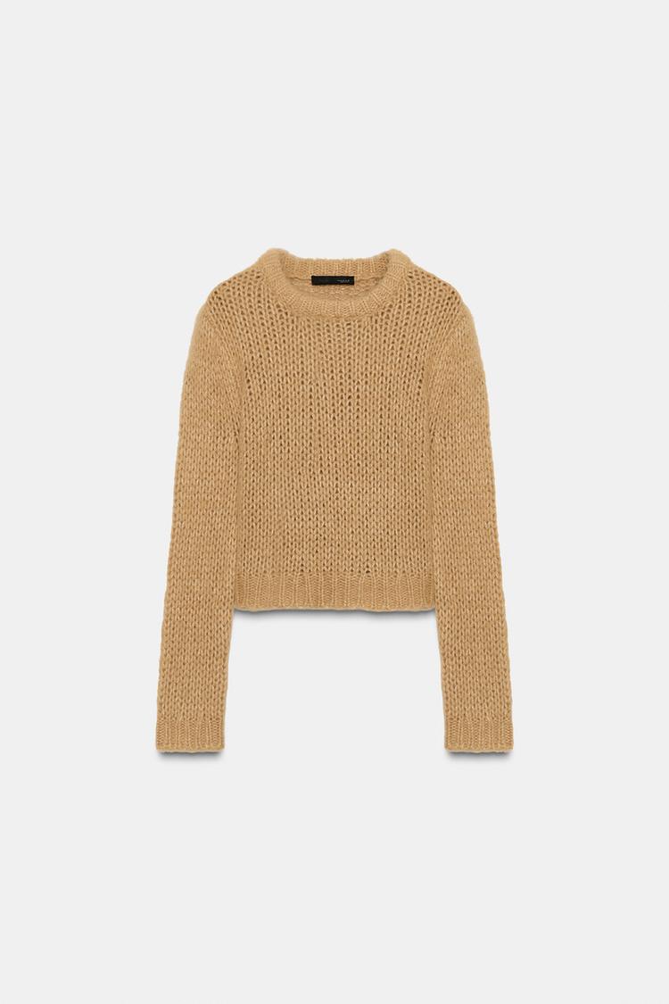 ZARA СВИТЕР ИЗ ТРИКОТАЖА С ЭФФЕКТОМ ВОРСА, РРЫЖЕВАТО-КОРИЧНЕВЫЙ