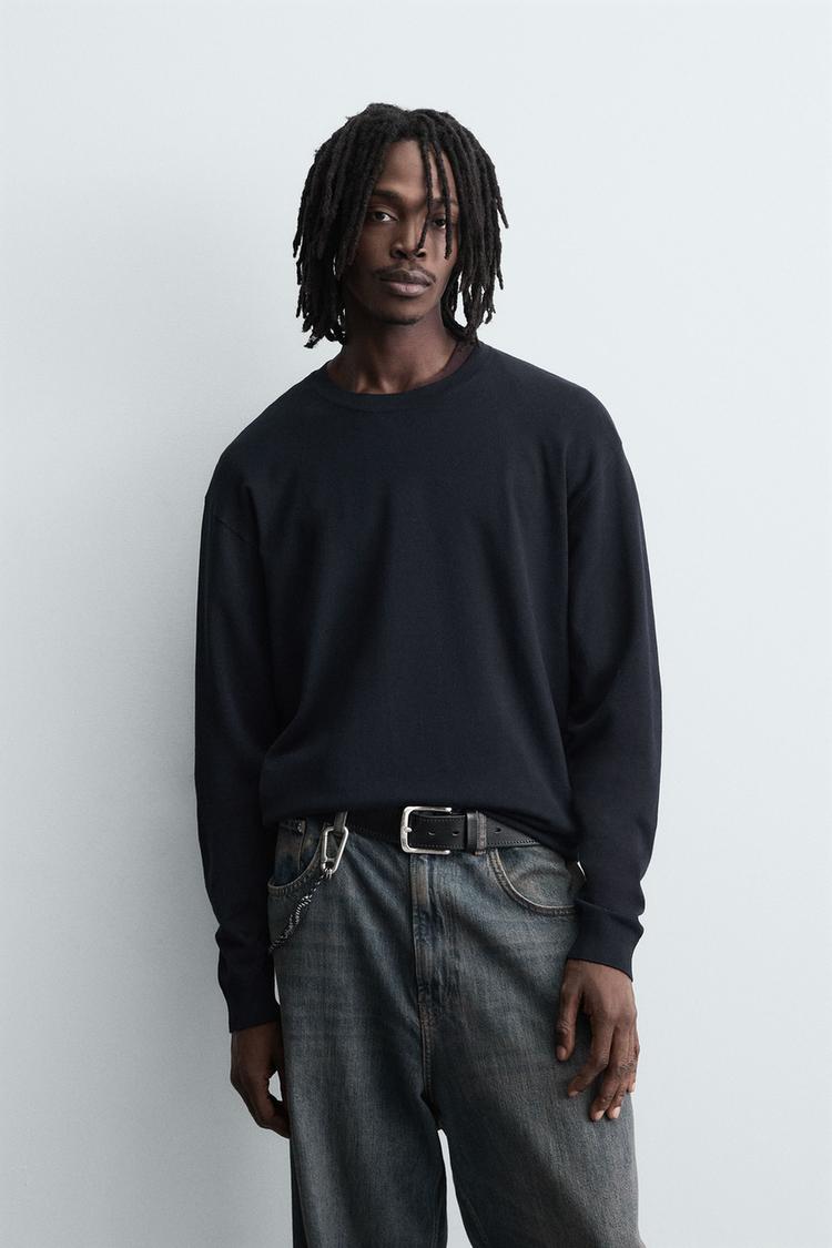 ZARA СВИТЕР ИЗ ВИСКОЗЫ С РЕЛЬЕФНЫМ УЗОРОМ, МОРСКОЙ СИНИЙ
