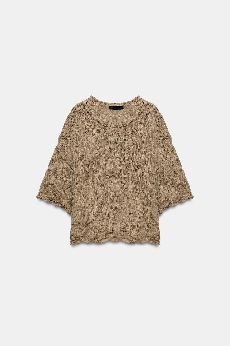 ZARA СВИТЕР ИЗ ЖАТОЙ ТКАНИ, РЫЖЕВАТО-КОРИЧНЕВЫЙ