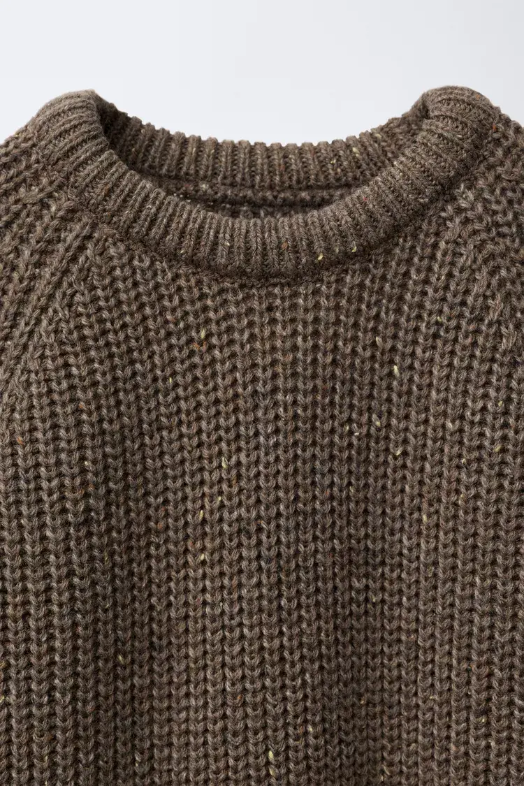 ZARA СВИТЕР КРУПНОЙ ВЯЗКИ, ЗЕЛЕНЫЙ МЕЛАНЖ