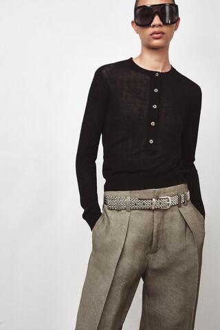 Свитер с круглым вырезом и длинными рукавами. Пуговицы спереди.