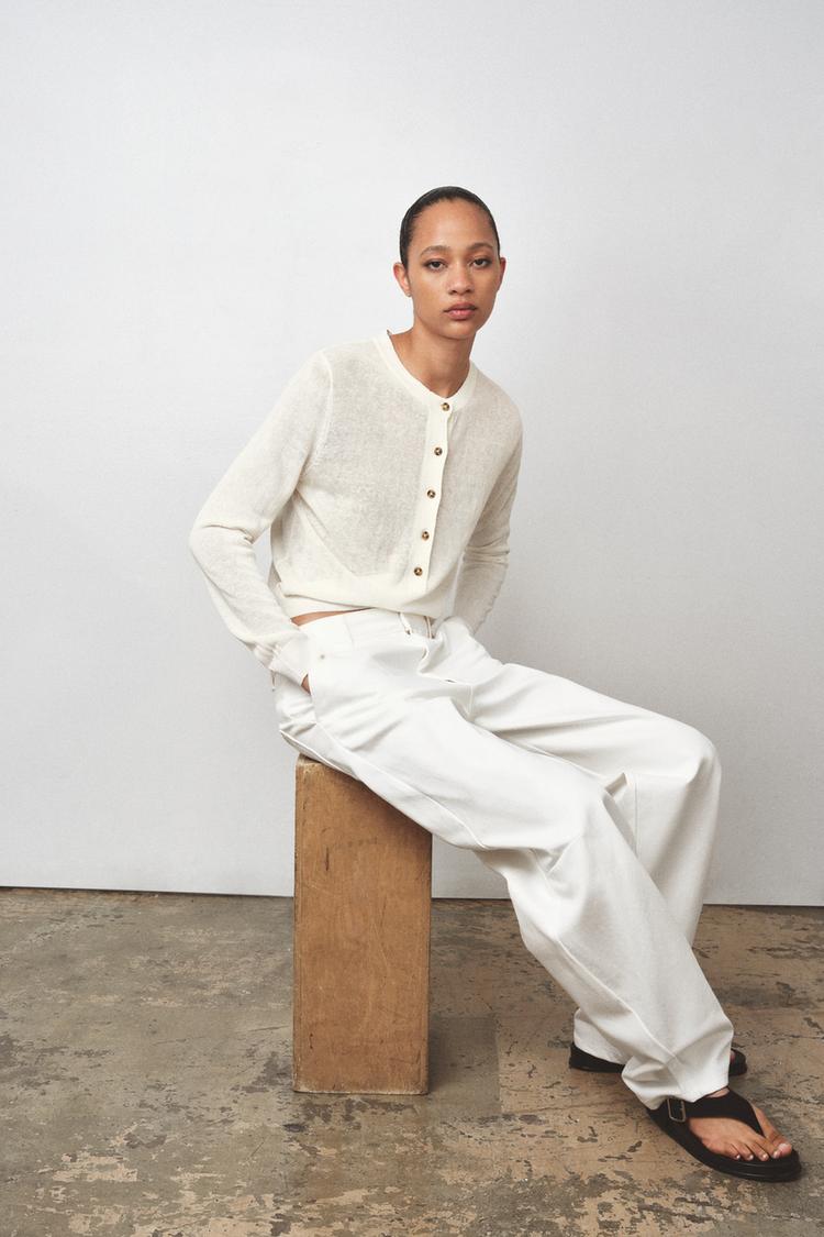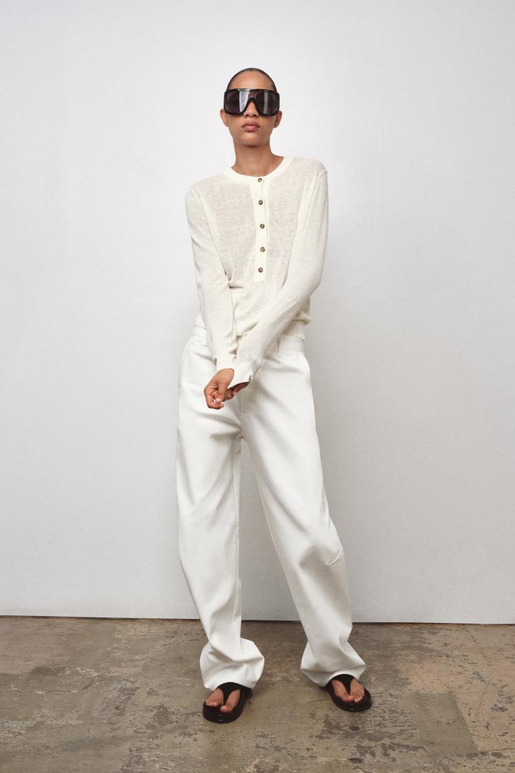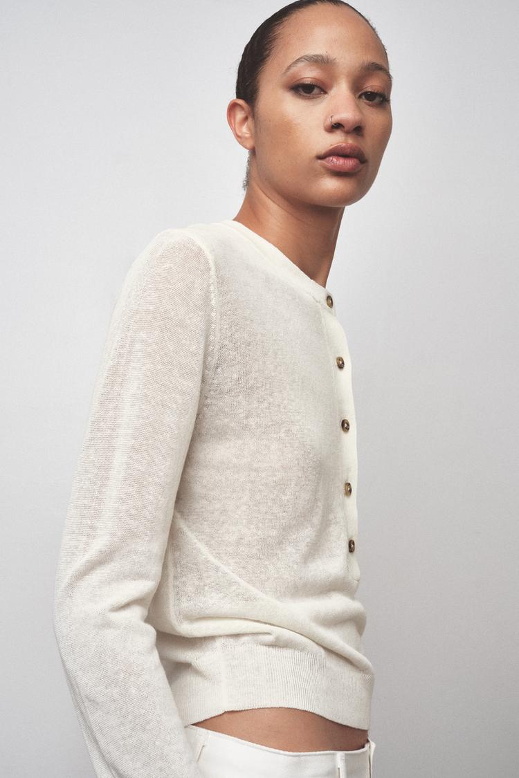 ZARA СВИТЕР НА ПУГОВИЦАХ, ЭКРЮ