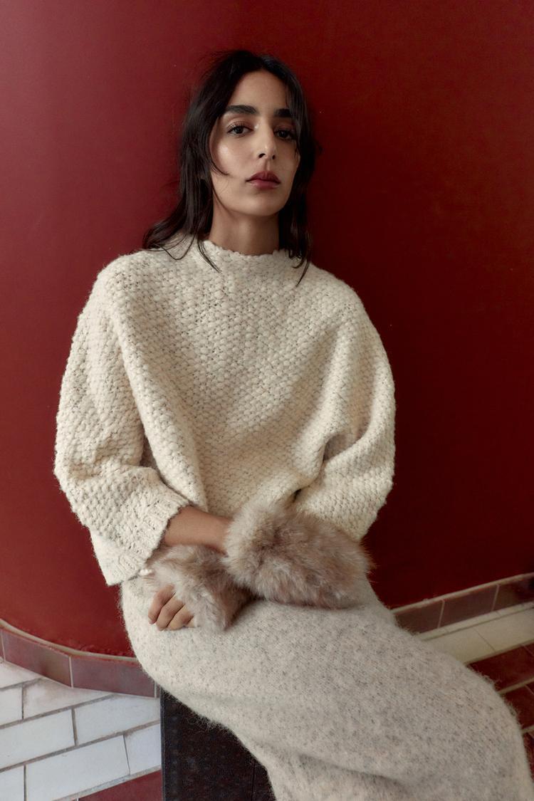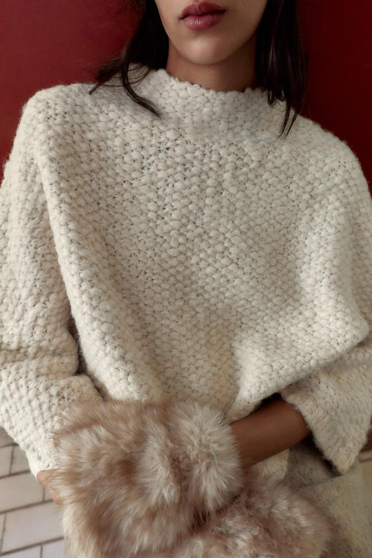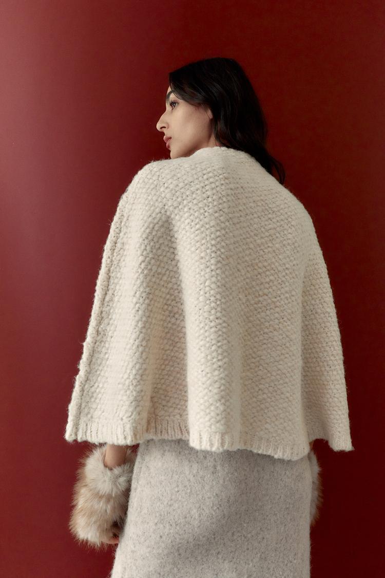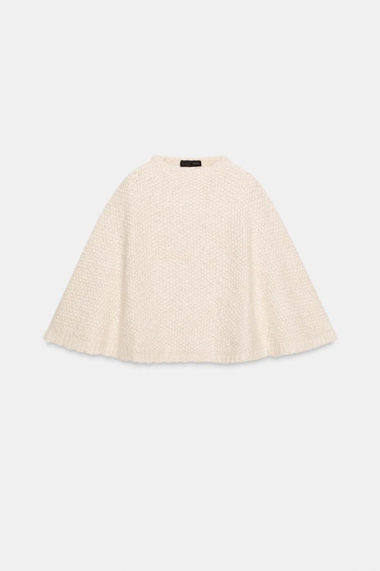 ZARA СВИТЕР-НАКИДКА КРУПНОЙ ВЯЗКИ, ЭКРЮ