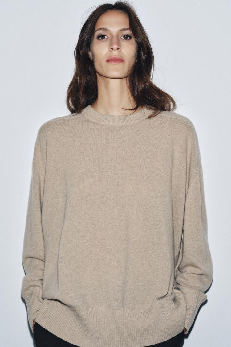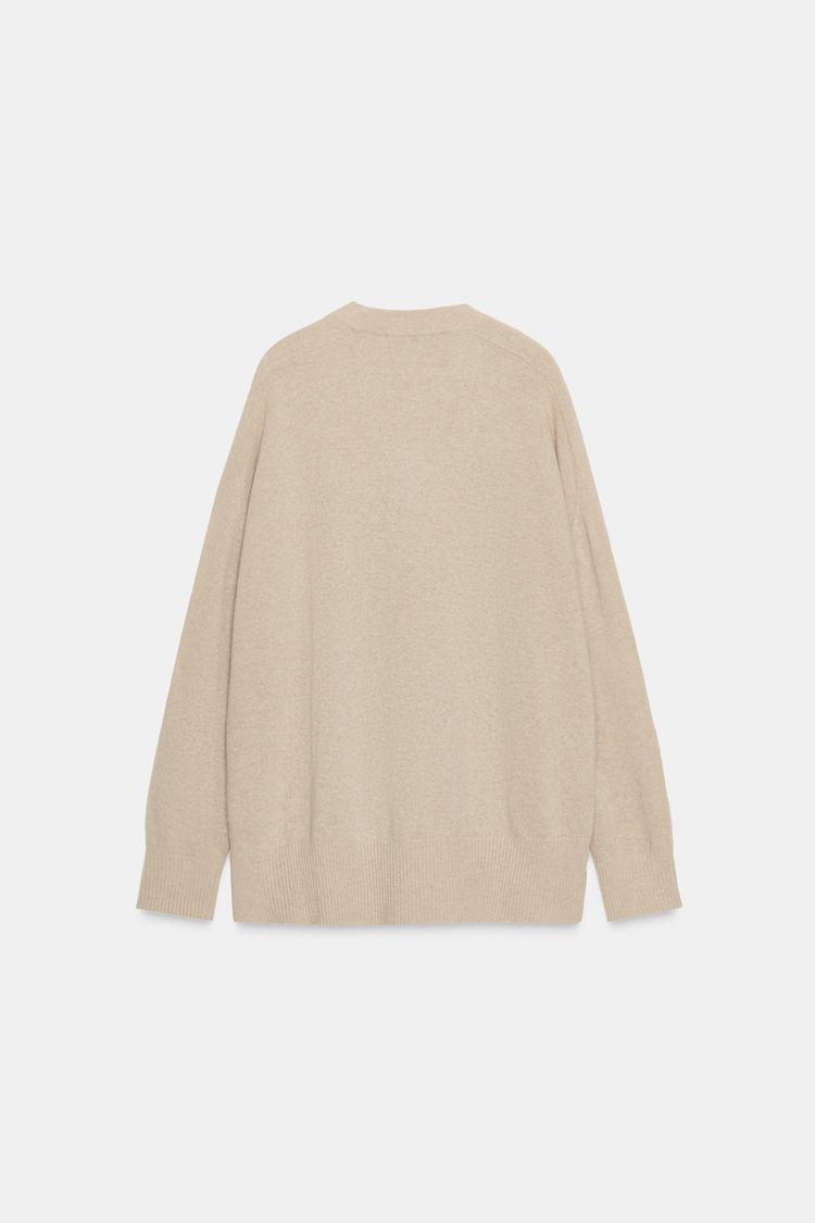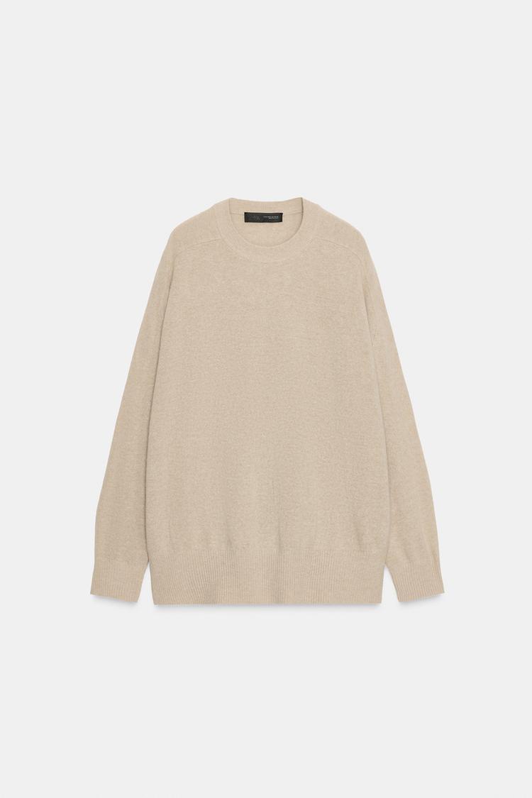 ZARA СВИТЕР ОВЕРСАЙЗ ИЗ 100% ШЕРСТИ, БЕЖЕВЫЙ