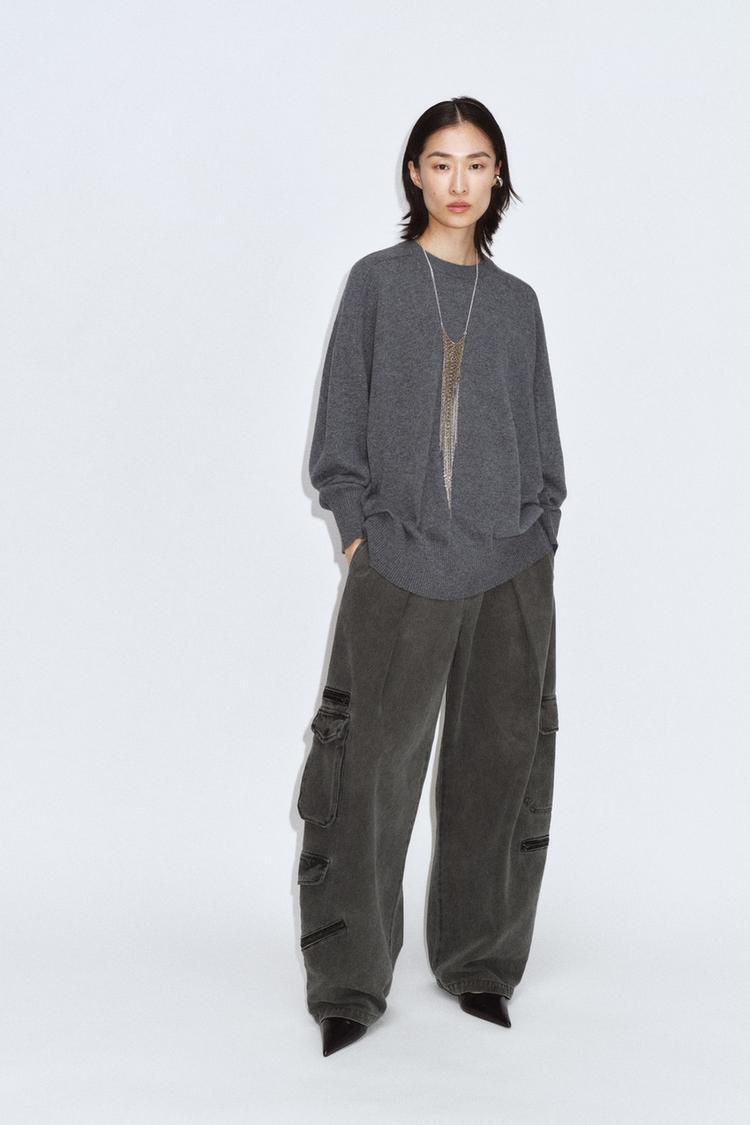 ZARA СВИТЕР ОВЕРСАЙЗ ИЗ 100% ШЕРСТИ, СЕРЫЙ