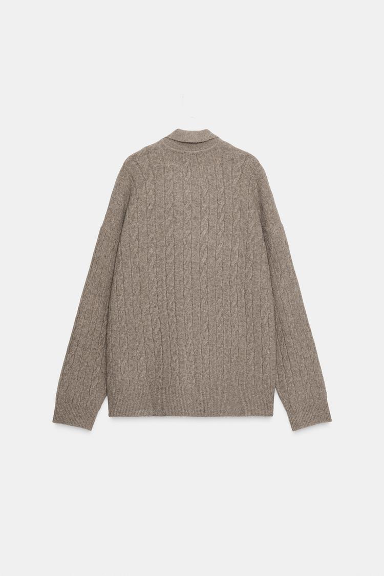 ZARA СВИТЕР ПОЛО С УЗОРОМ «КОСЫ», СЕРО-КОРИЧНЕВЫЙ МЕЛАНЖ