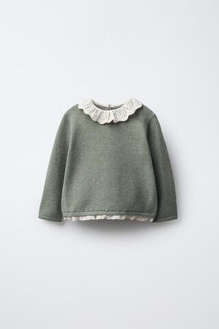 ZARA СВИТЕР С АЖУРНЫМИ ВСТАВКАМИ, СВЕТЛО-ЗЕЛЕНЫЙ