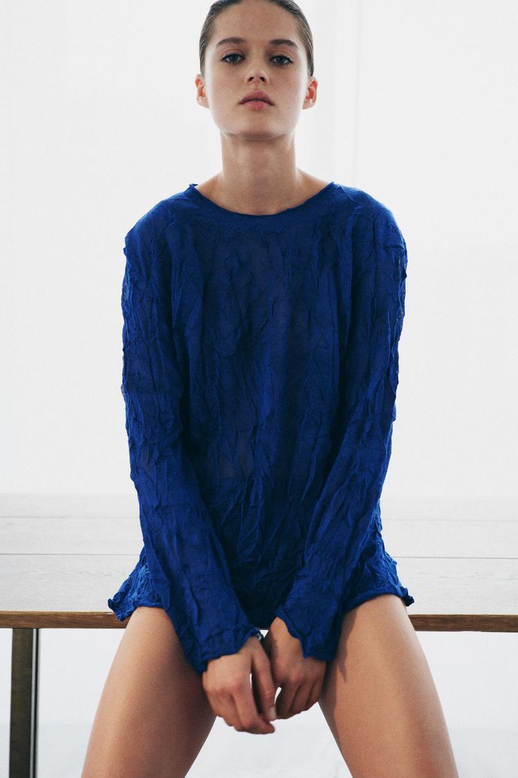 ZARA СВИТЕР С ЭФФЕКТОМ МЯТОЙ ТКАНИ, ВАСИЛЬКОВЫЙ