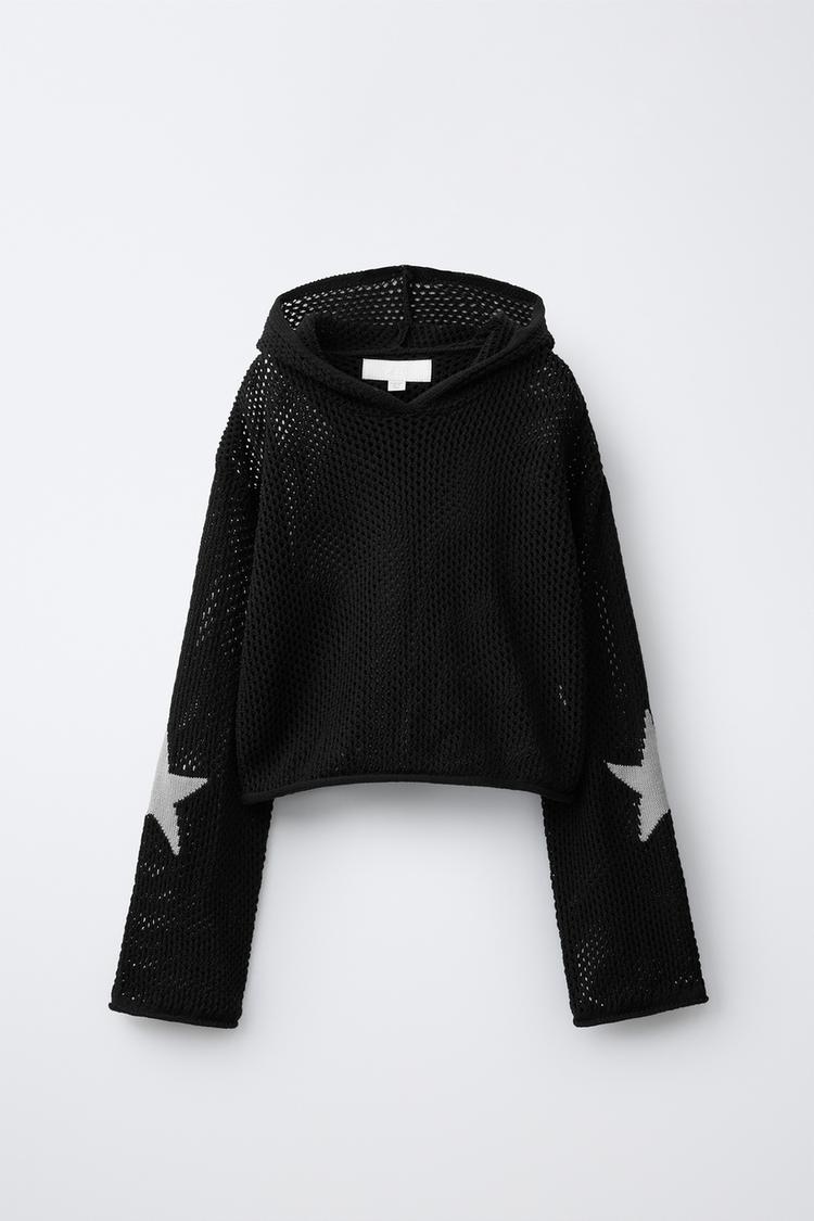 ZARA СВИТЕР С КАПЮШОНОМ И ЗВЕЗДОЙ, ЧЕРНЫЙ