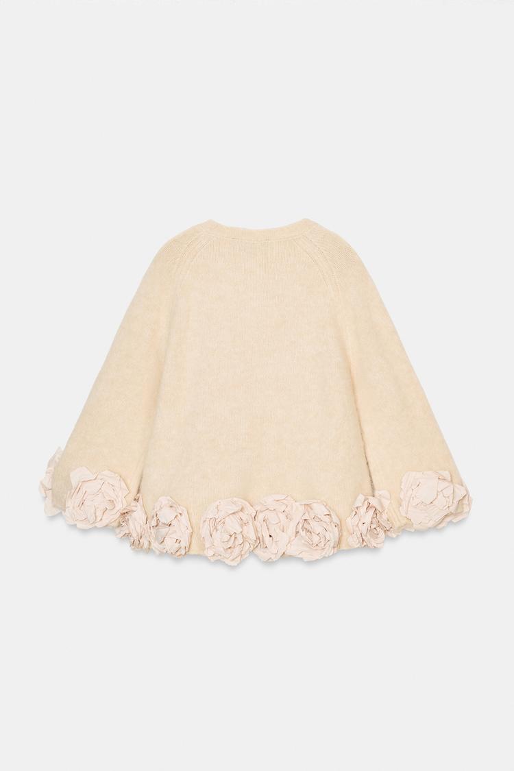ZARA СВИТЕР С КОНТРАСТНЫМИ ЦВЕТОЧНЫМИ ДЕТАЛЯМИ, ТЕЛЕСНО-РОЗОВЫЙ