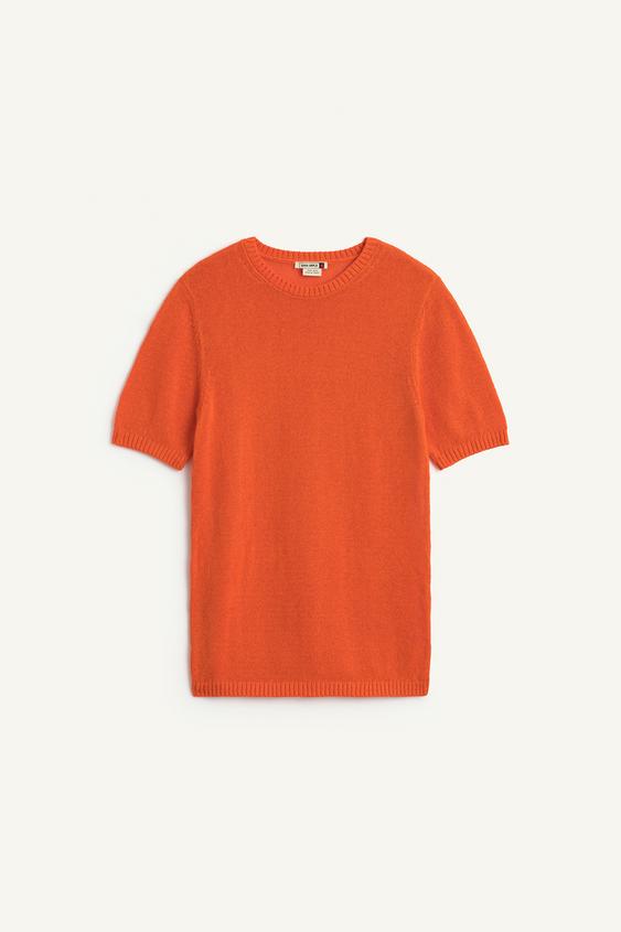 ZARA СВИТЕР С КОРОТКИМИ РУКАВАМИ, ОРАНЖЕВЫЙ