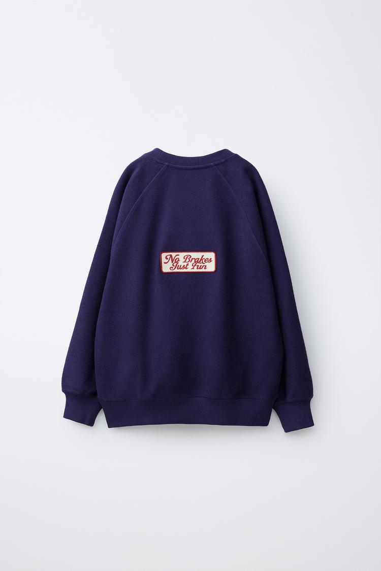 ZARA СВИТЕР С НАДПИСЬЮ, СИНИЙ