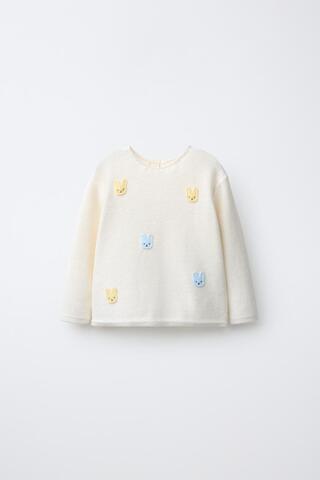 ZARA СВИТЕР С НАШИВКАМИ «КРОЛИКИ», ЭКРЮ