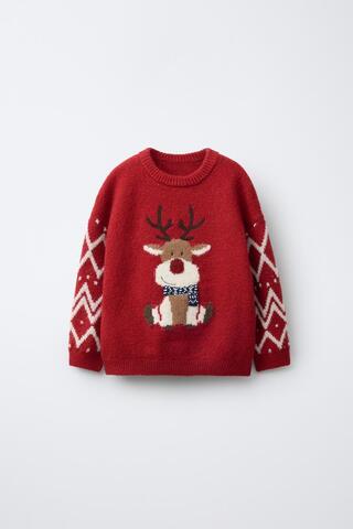 ZARA СВИТЕР С ОЛЕНЕМ, КРАСНЫЙ