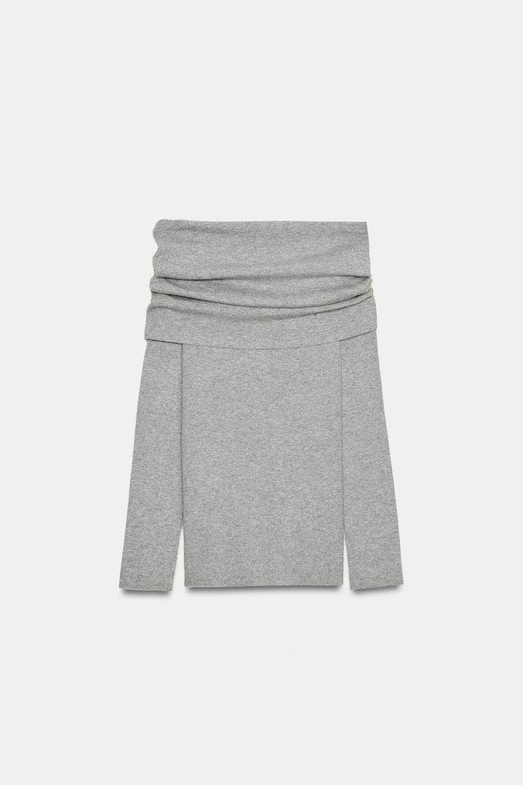 ZARA СВИТЕР С ОТКРЫТЫМИ ПЛЕЧАМИ, СЕРЫЙ МЕЛАНЖ