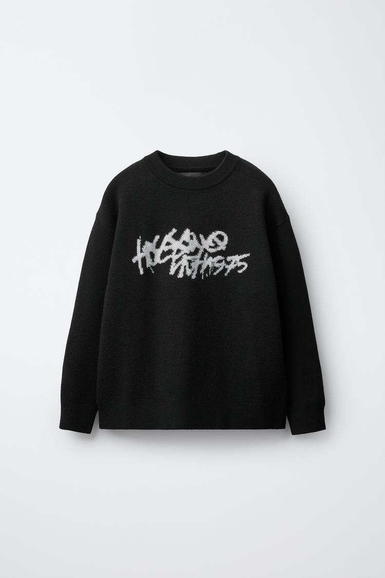 ZARA СВИТЕР С ПРИНТОМ "ГРАФФИТИ", ЧЕРНЫЙ