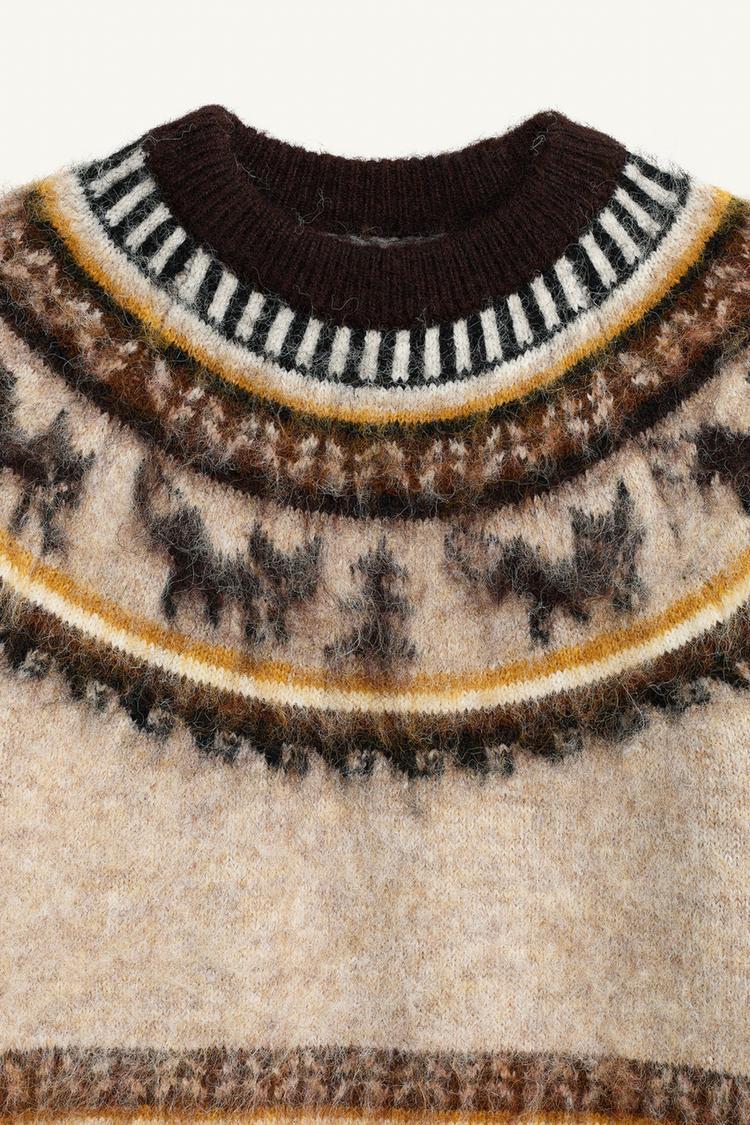 Трикотажный свитер с круглым вырезом и длинными рукавами. С принтом.