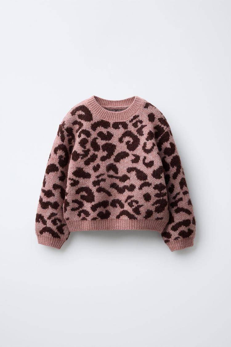 Трикотажный джемпер с круглым вырезом и длинными рукавами. Анималистический принт.