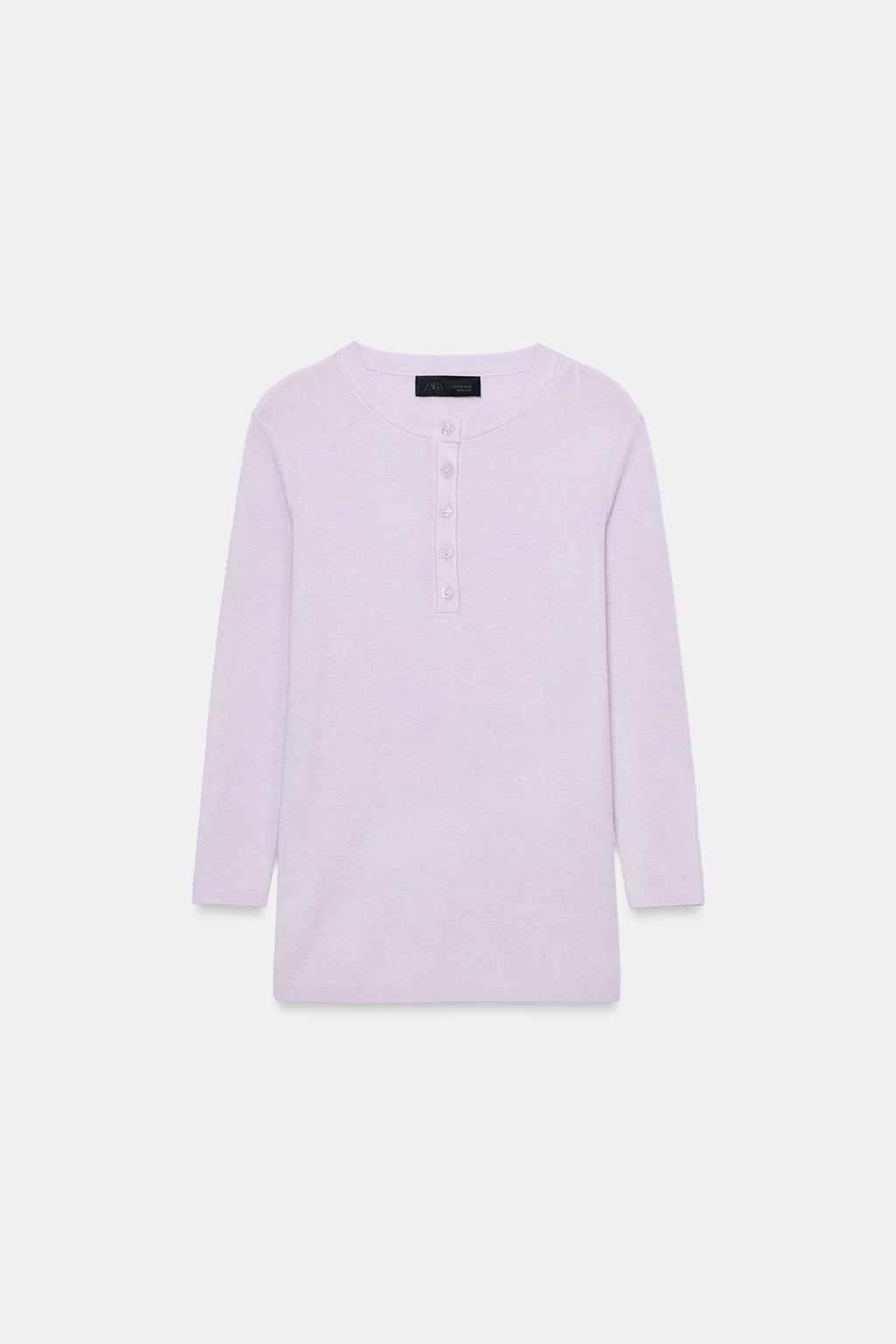 ZARA СВИТЕР С ПУГОВИЦАМИ, СВЕТЛО-СИРЕНЕВЫЙ