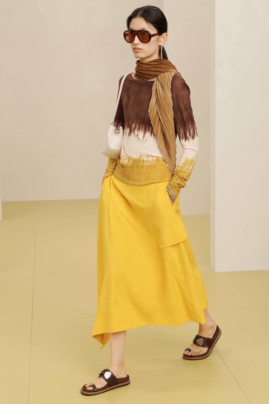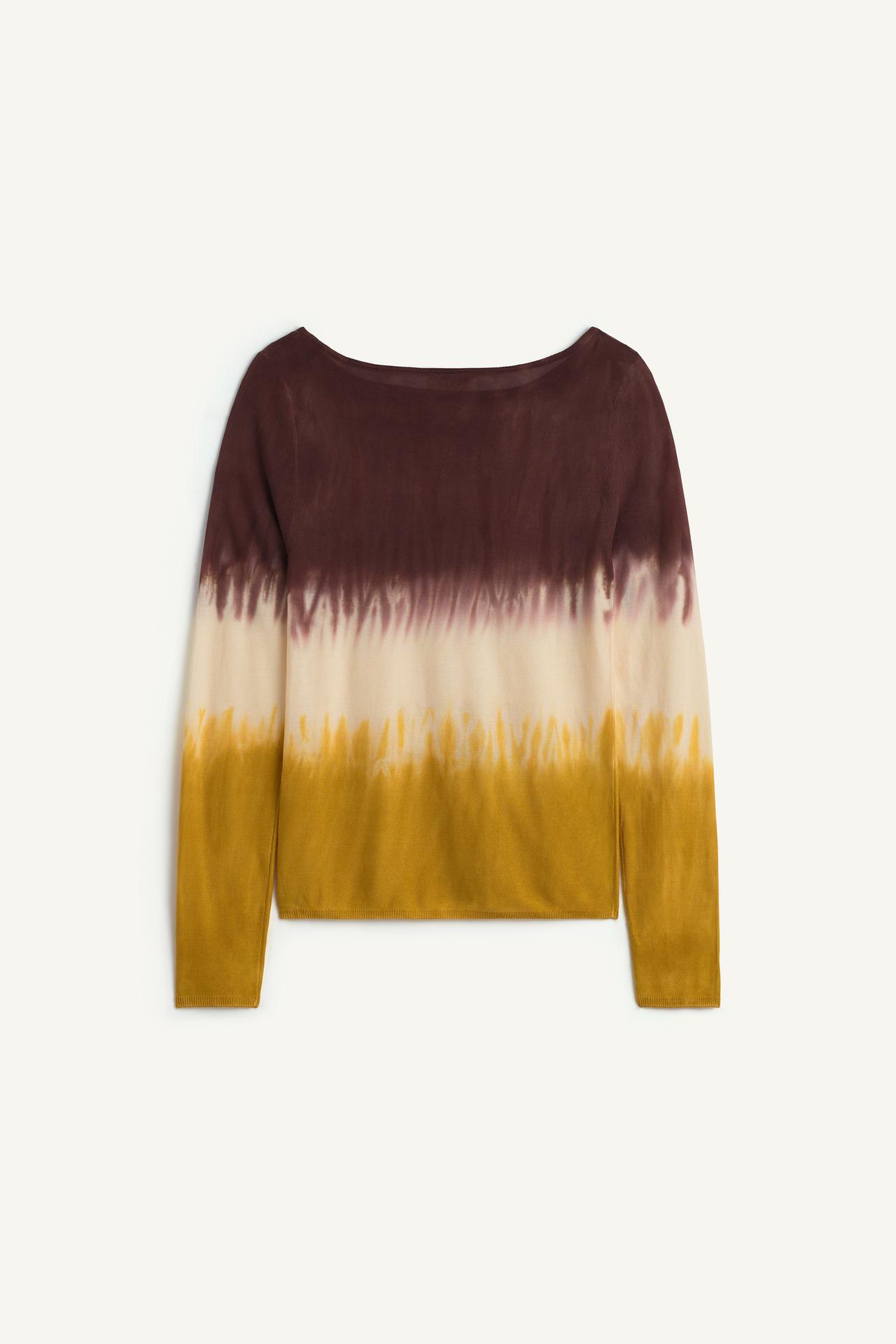 Свитер из основной ткани из лиоцелевой пряжи. С широким воротником и длинными рукавами. С резинкой по краю.