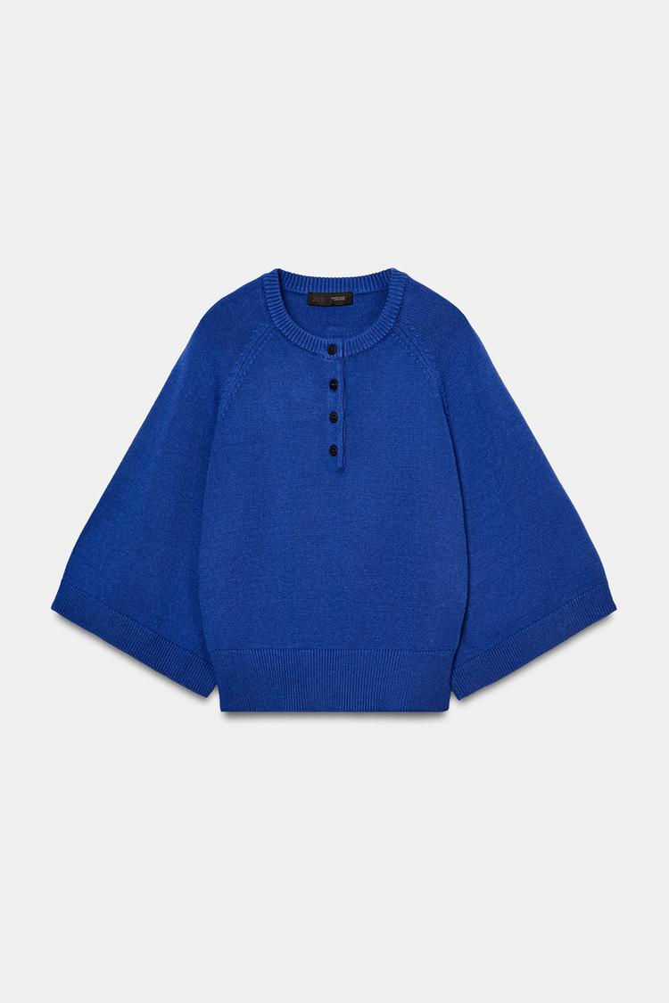 ZARA СВИТЕР С ШИРОКИМИ РУКАВАМИ, ЯРКО-СИНИЙ