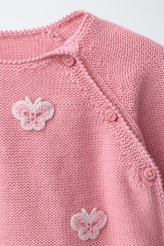 ZARA СВИТЕР С УЗОРОМ «БАБОЧКИ», МЯГКИЙ РОЗОВЫЙ