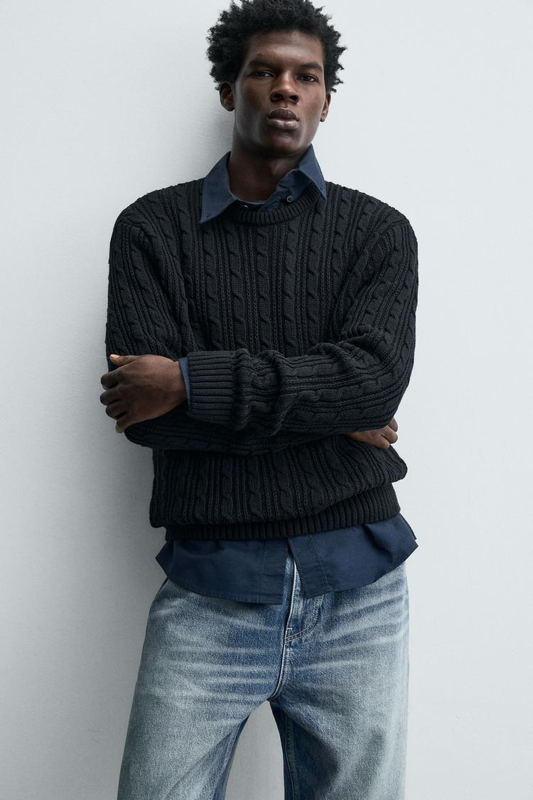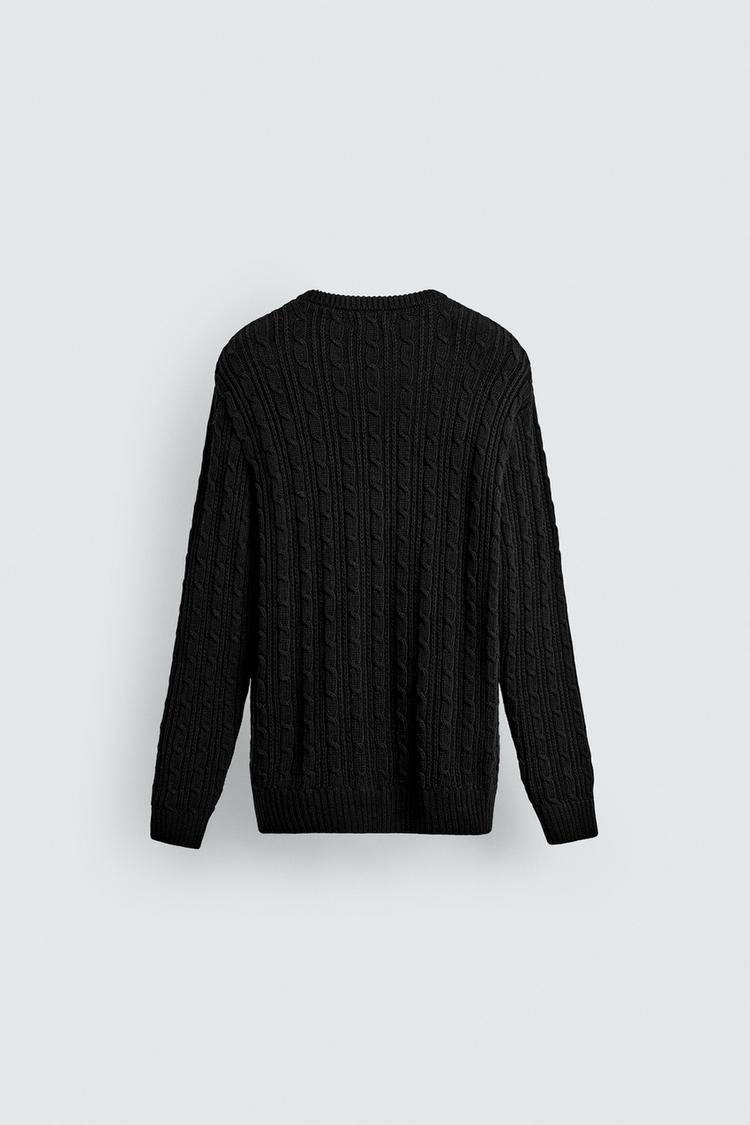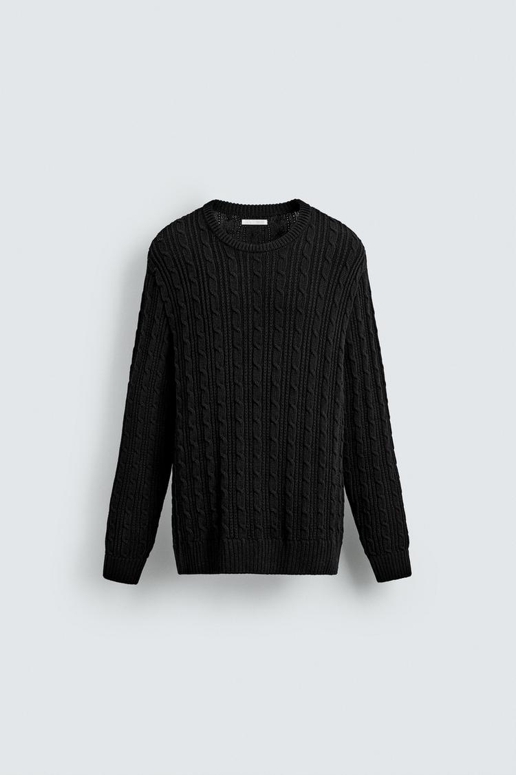 ZARA СВИТЕР С УЗОРОМ «КОСЫ», ЧЕРНЫЙ