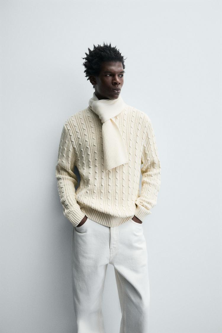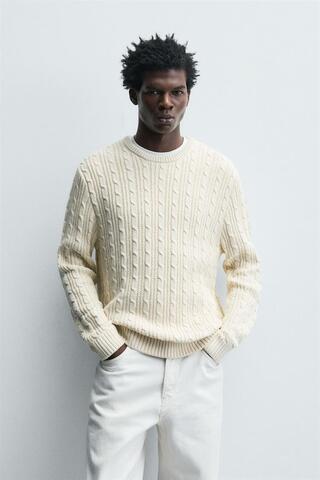 ZARA СВИТЕР С УЗОРОМ «КОСЫ», ЭКРЮ
