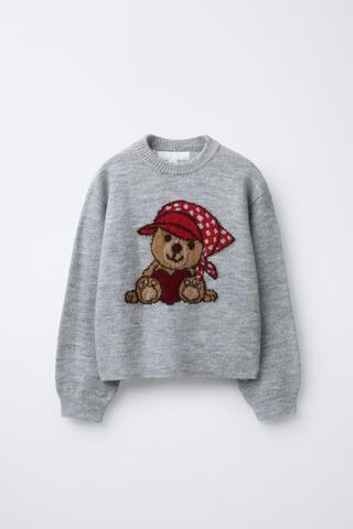 ZARA СВИТЕР С УЗОРОМ «МЕДВЕДЬ», СЕРЫЙ
