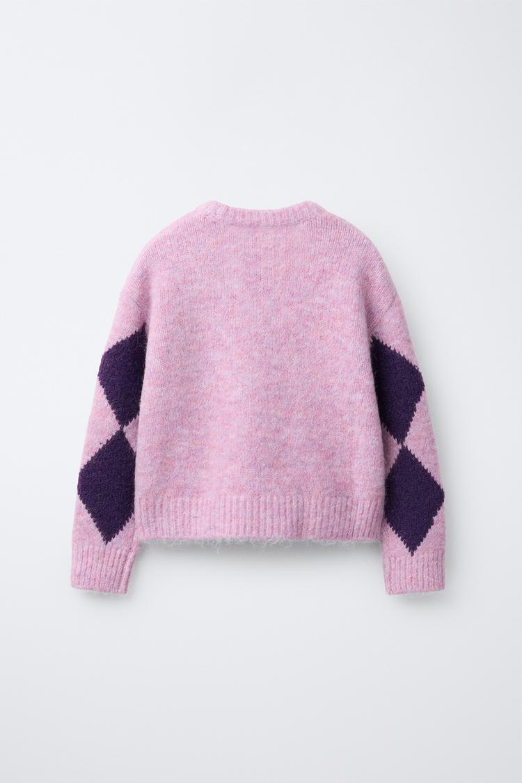 ZARA СВИТЕР С УЗОРОМ «РОМБЫ», ПУРПУРНЫЙ