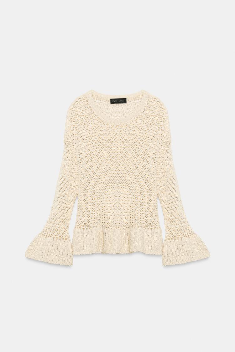 ZARA СВИТЕР С ВОЛАНАМИ, ЭКРЮ