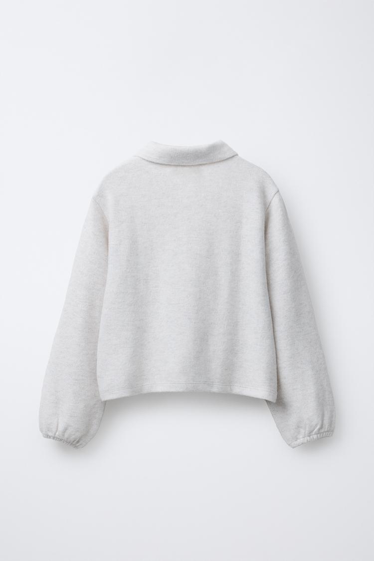 ZARA СВИТЕР С ВОРОТНИКОМ-ПОЛО, ЭКРЮ
