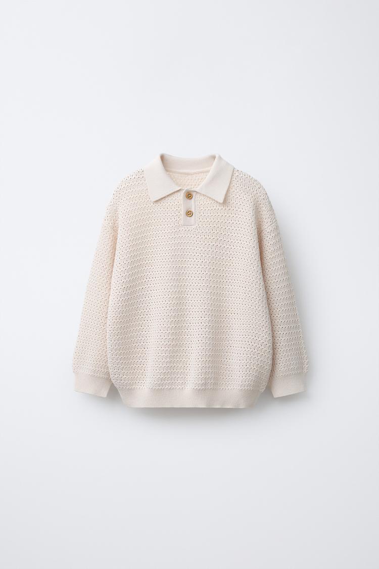 ZARA СВИТЕР С ВОРОТНИКОМ-ПОЛО, ЭКРЮ