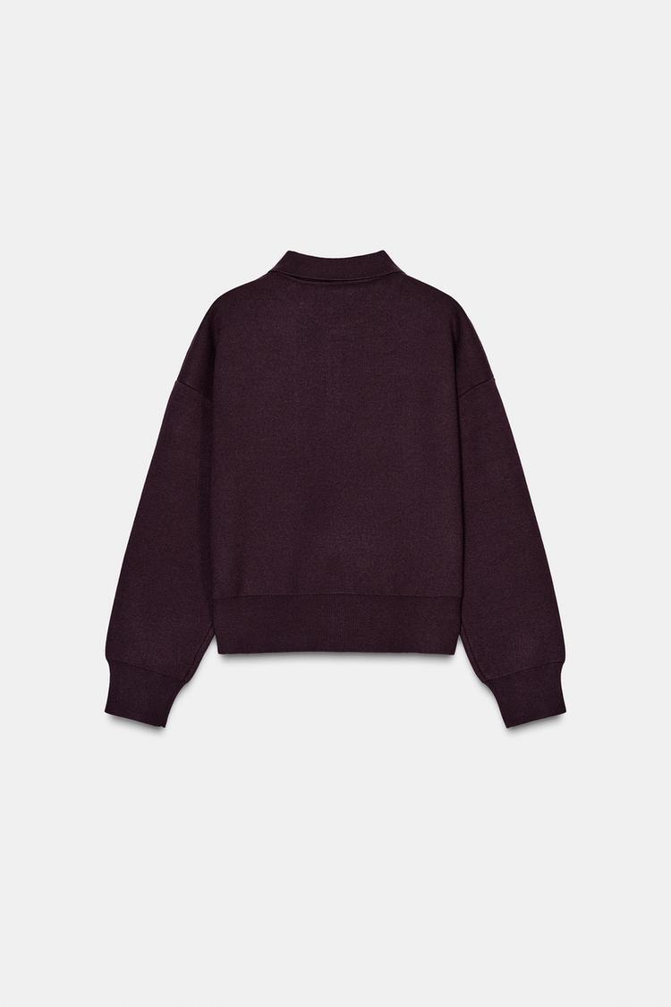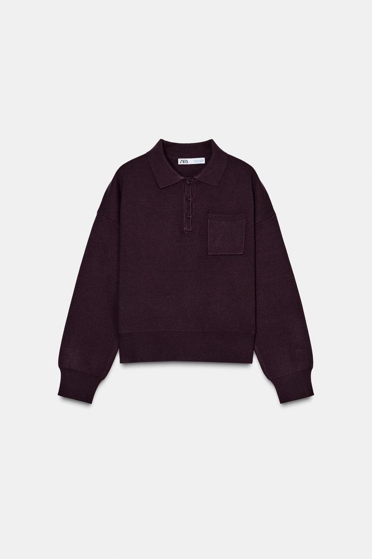 ZARA СВИТЕР С ВОРОТНИКОМ ПОЛО И КАРМАНОМ, БОРДОВЫЙ