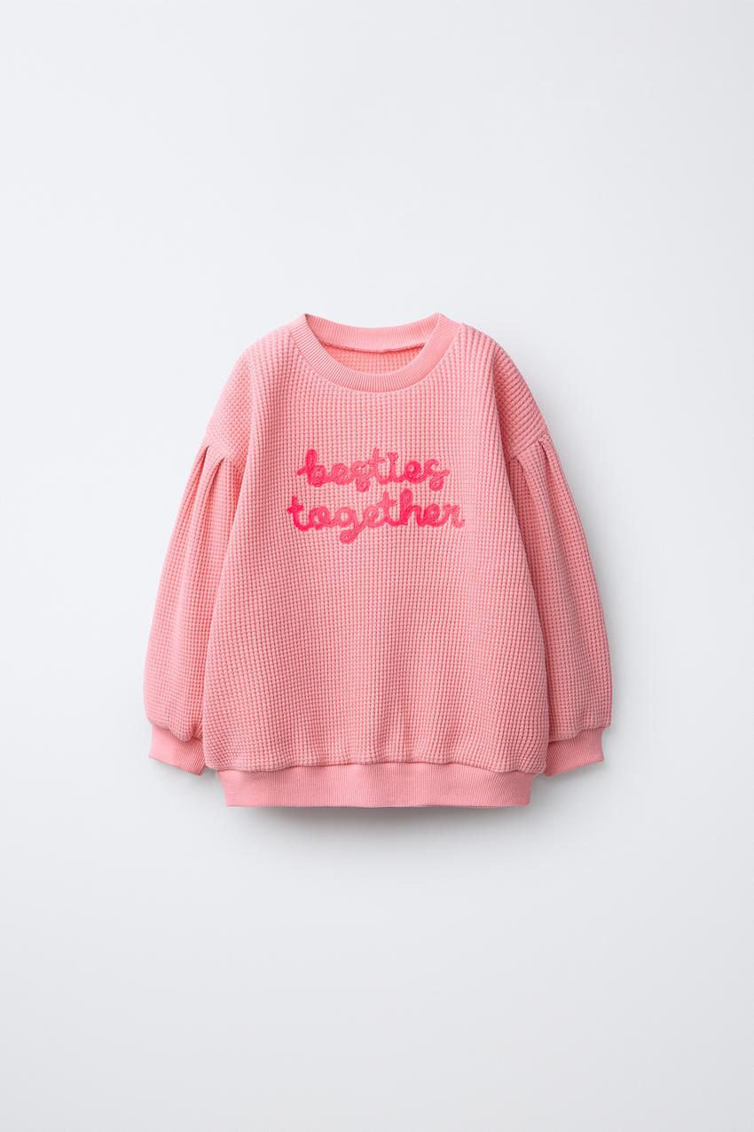 ZARA СВИТЕР С ВЫШИТОЙ НАДПИСЬЮ, РОЗОВЫЙ