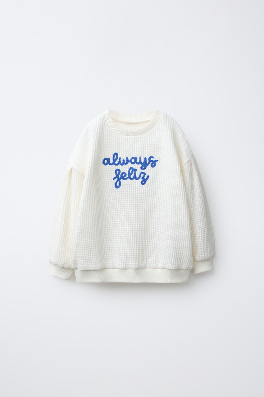 ZARA СВИТЕР С ВЫШИТОЙ НАДПИСЬЮ, ЖЕЛТОВАТО-БЕЛЫЙ