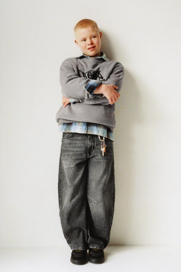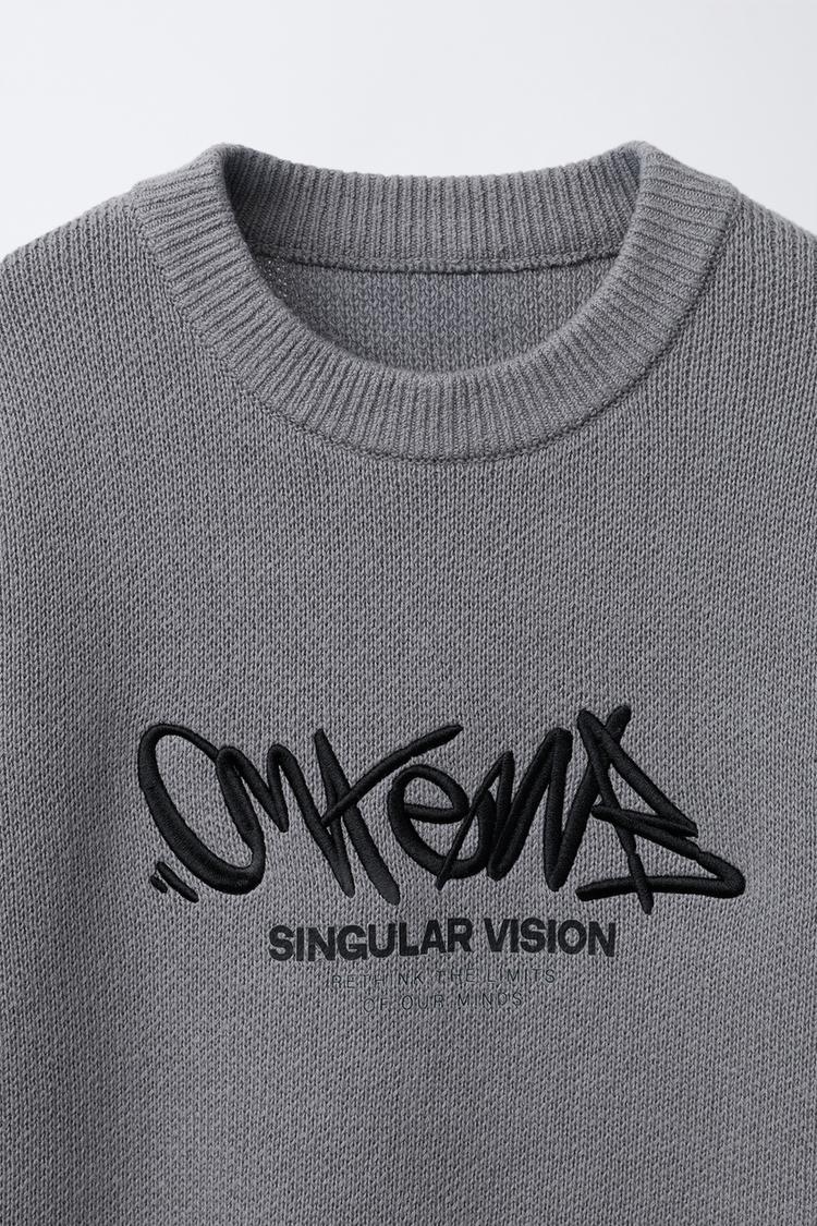ZARA СВИТЕР С ВЫШИТЫМ ГРАФФИТИ, СЕРЫЙ