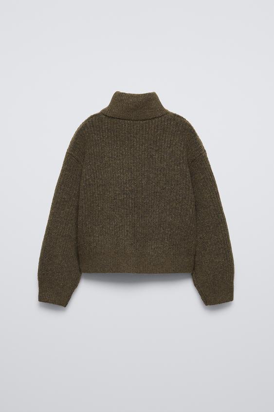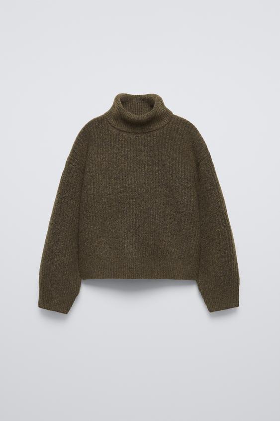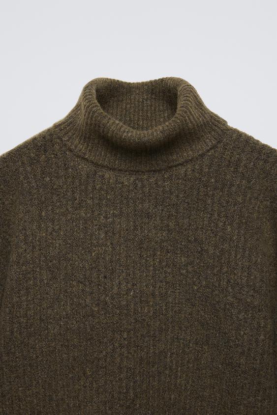 ZARA СВИТЕР С ВЫСОКИМ ВОРОТНИКОМ, СЕРОВАТО-КОРИЧНЕВЫЙ