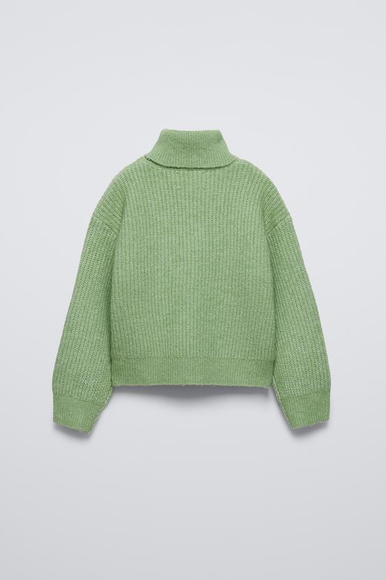 ZARA СВИТЕР С ВЫСОКИМ ВОРОТНИКОМ, СВЕТЛО-ЗЕЛЕНЫЙ
