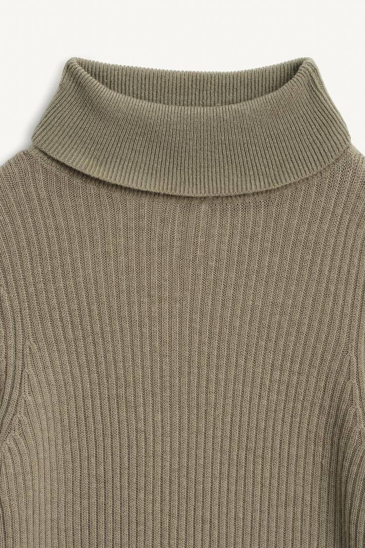 ZARA СВИТЕР С ВЫСОКИМ ВОРОТНИКОМ, СВЕТЛЫЙ ХАКИ