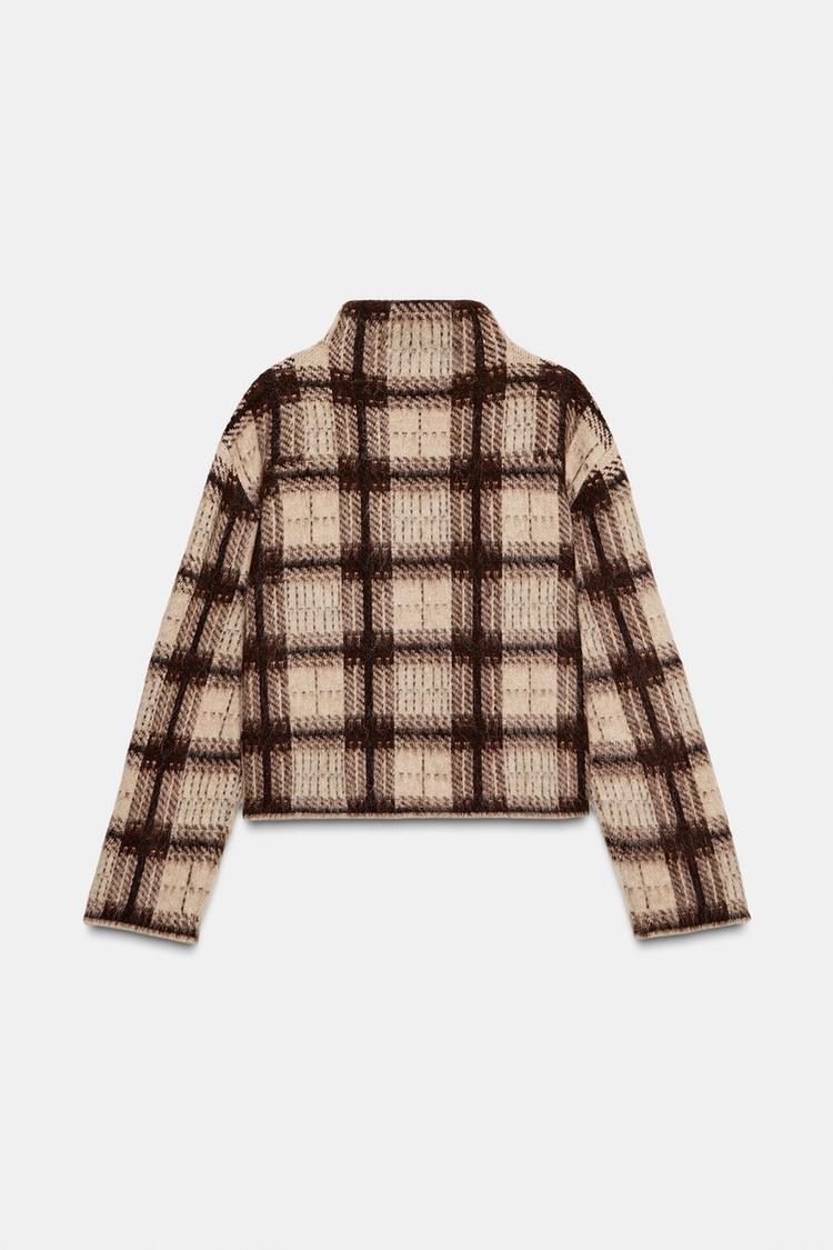 ZARA СВИТЕР В КЛЕТКУ С ЭФФЕКТОМ ВОРСА, БЕЖЕВЫЙ/НЕЖНО-КОРИЧНЕВЫЙ